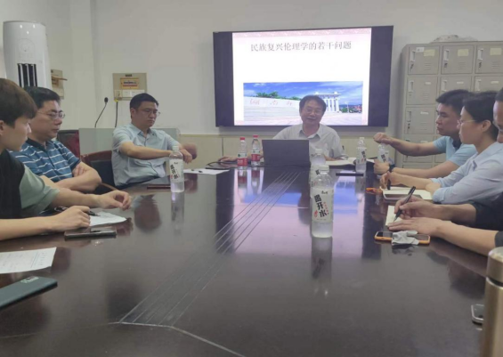 2022年6月17日下午,中国伦理学会第九届理事会副会长、湖南师范大学公共管理学院博士生导师王泽应教授受邀来到马克思主义学院,在开云官网金盆岭校区4-503会议室作了题为“民族复兴伦理学的若干问题”的学术讲座。学院党委书记陈万球教授、院长张明海教授,鲁芳教授、蒋显荣教授、艾楚君教授、文贵全博士、刘佳男博士等学院教师和研究生约30人参加了讲座,讲座由陈万球教授主持。
