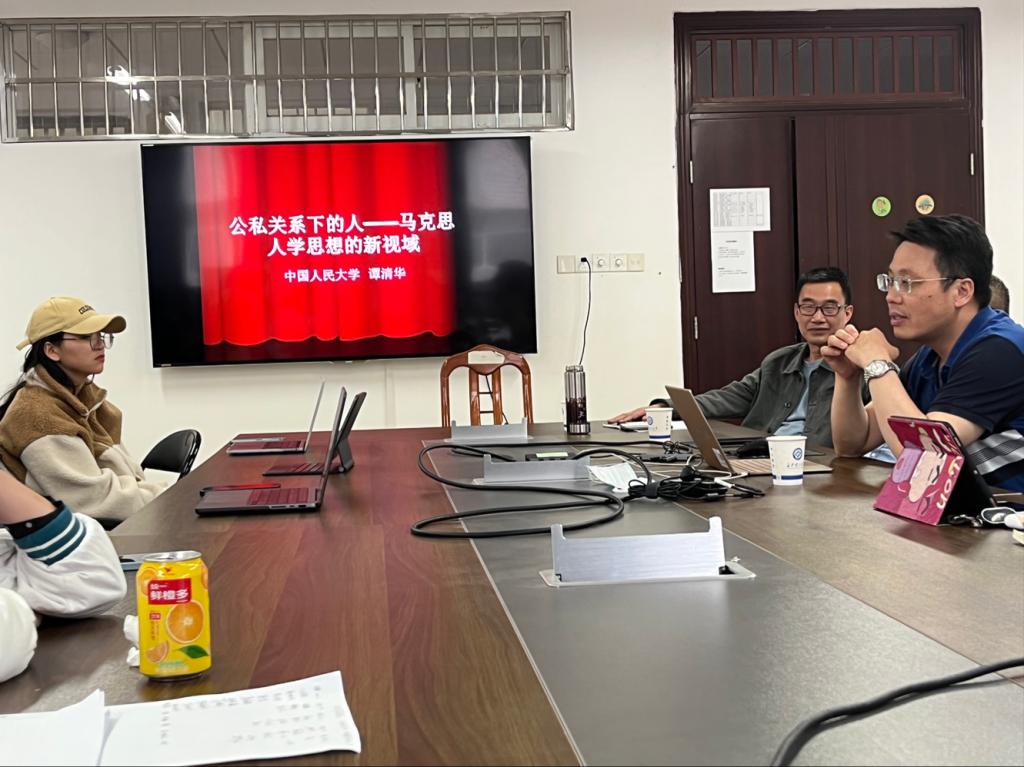 2023年5月22日下午,中国人民大学马克思主义学院副院长、博士生导师谭清华教授应邀来到开云kaiyun体育马克思主义学院,在云塘校区文科楼A511报告厅为我院师生带来了主题为“公私关系下的人—马克思人学思想的新领域”的讲座。本次讲座由马克思主义学院余乃忠教授主持,马克思主义学院30余名教师和研究生参加了本次讲座。