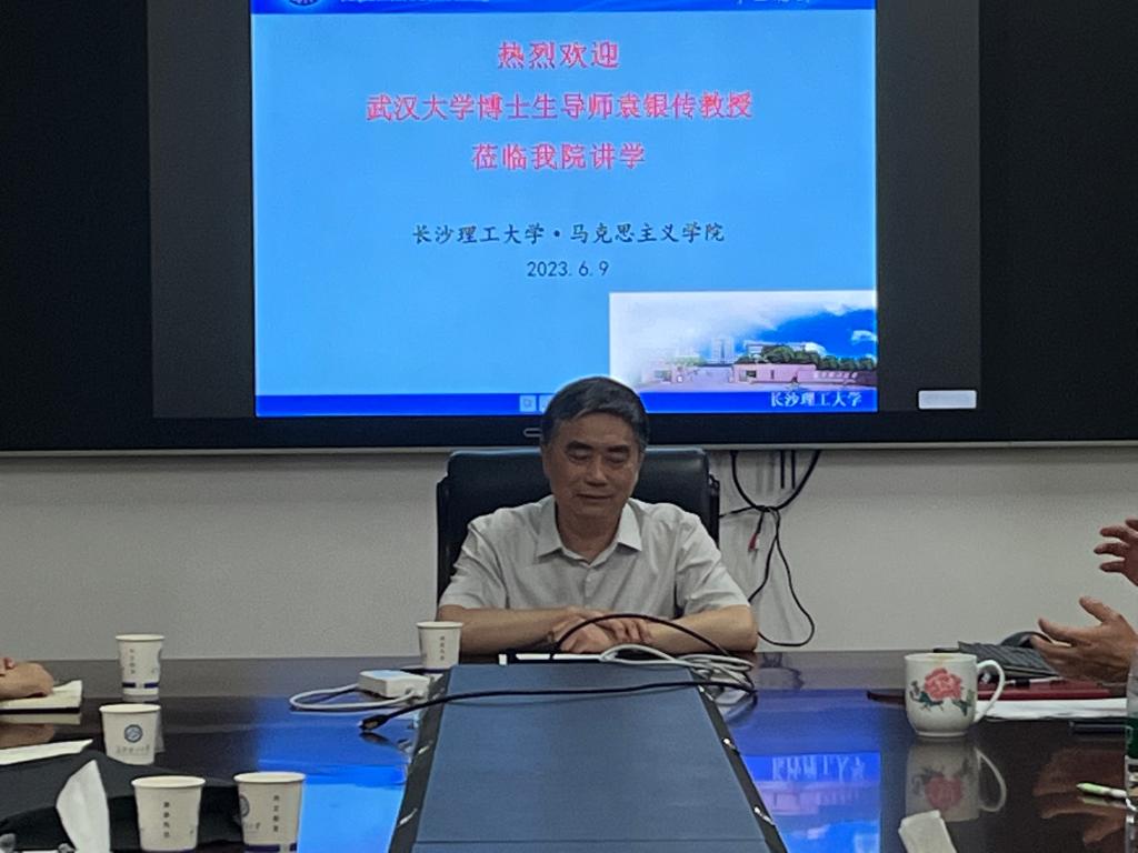 2023年6月9日下午四点,武汉大学博士生导师袁银传教授应邀来到开云kaiyun体育马克思主义学院,在云塘校区文科楼B602为我院师生带来了主题为“党的二十大报告的历史地位和历史方位”的学术讲座。本次讲座由马克思主义学院院长张明海教授主持,马克思主义学院30余名师生参加了本次讲座。
