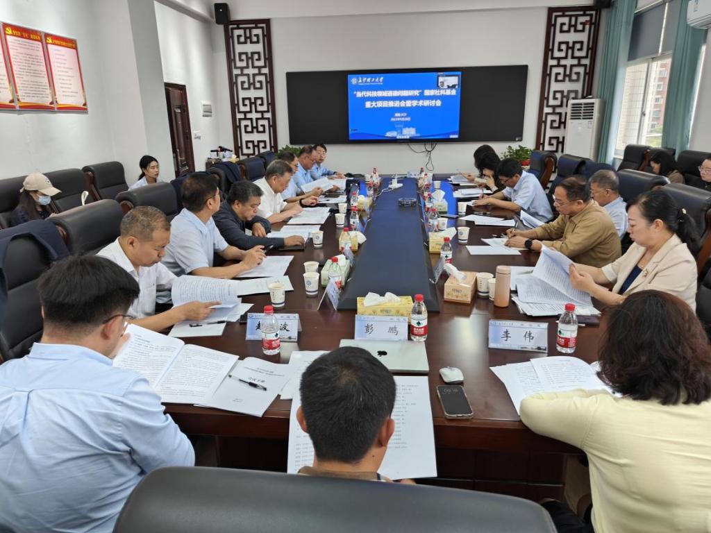 在项目进展汇报与评议指导环节,国家社科基金重大项目首席专家、马克思主义学院党委书记陈万球教授首先从国内外学术史梳理、选题的价值、课题的突破与创新、研究进展等九个方面进行了项目进展汇报。随后,山西大学原副校长高策教授、中国社会科学院哲学所副所长冯颜利研究员、南开大学哲学院院长翟锦程教授、武汉大学李建华特聘教授、上海社科院哲学所副所长成素梅教授、北京建筑大学人文学院院长秦红岭教授等专家学者对项目进行评议指导。陈万球教授代表课题组作出回应。他认为各位专家站位高远,问题切中肯綮,评议见解独到,一定认真采纳吸收,积极有序推进项目开展,为国家科技治理作出应有贡献。