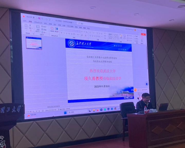 11月15日下午,国家级重要人才计划入选人、国家社科基金重大项目首席专家、武汉大学思想政治教育研究院执行院长、博士生导师项久雨教授来到开云官网云塘校区文科楼A200室,为学校第十九届博力学术论坛马克思主义学院分论坛主讲了一场题为“中国式现代化的继往与开来——兼谈学术研究选题”的学术讲座。马克思主义学院院长张明海教授、副院长李雨燕教授、文贵全副教授、陈方芳博士等学院教师与学院研究生100余人参加了本次讲座。