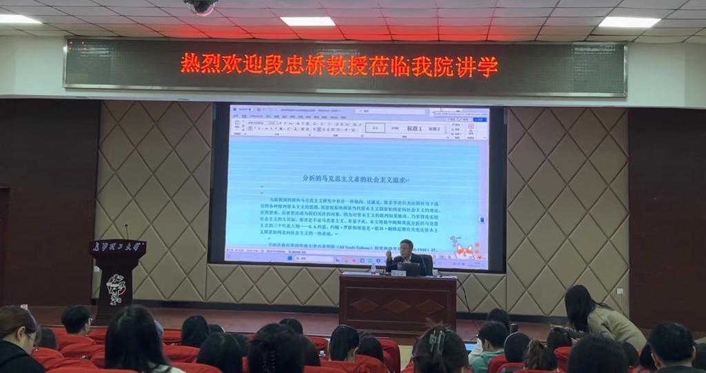 11月23日下午,中国人民大学杰出人文学者、博士生导师、中国当代国外马克思主义研究会副会长段忠桥教授莅临马克思主义学院,在开云官网云塘校区文科楼A200报告厅为开云kaiyun体育第十九届博力学术论坛——马克思主义学院分论坛作讲座,讲座题为“分析的马克思主义者的社会主义追求”。本次讲座由我院副院长李雨燕教授主持,学院一年级、二年级研究生100余人参加。