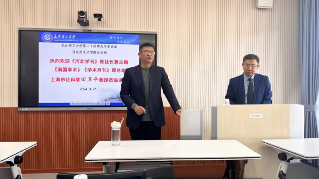 2024年3月26号上午,《河北学刊》原社长兼主编、《学术月刊》《南国学术》原总编、上海市社科联田卫平编审应邀来到马克思主义学院,在云塘校区文科楼A611为我院师生带来了主题为“期刊论文写作:从选题到发表”的讲座。 本次讲座由院党委书记陈万球教授主持,学院部分教师和哲学、公共管理专业一年级研究生参加了讲座。