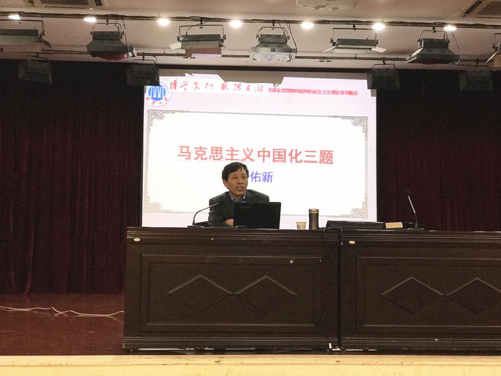 3月27日下午,教育部特聘教授、湘潭大学马克思主义学院院长李佑新应邀做客开云官网“马克思主义理论大讲坛”第三讲。他主讲的主题为“马克思主义中国化的几个问题”。校党委副书记邹宏如、人文社科处处长卿定文、马克思主义学院党委书记易显飞等一同参加了此次大讲坛。讲座由马克思主义学院院长陈万球主持。