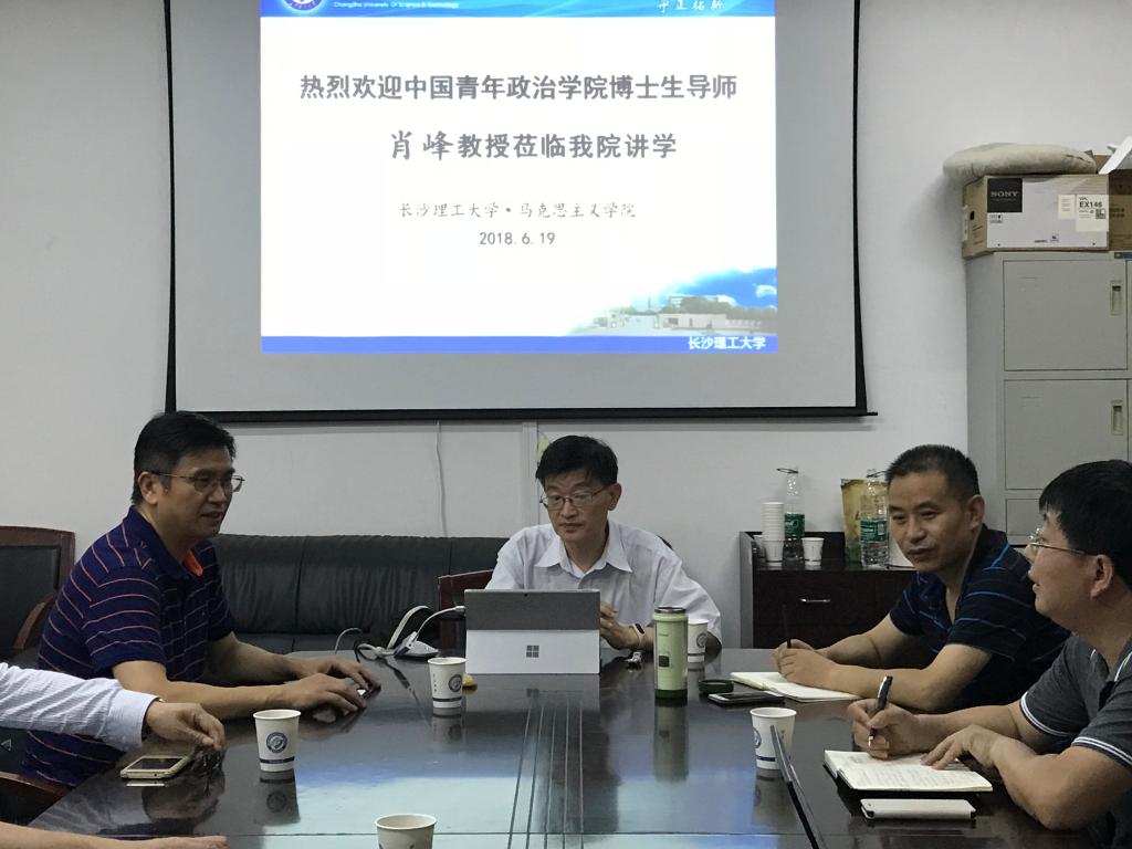 6月19日晚上,在开云kaiyun体育金盆岭校区4教503学术报告厅,国家社科基金重大项目首席专家,中国青年政治学院、华南理工大学马克思主义学院博士生导师肖峰教授以“历史唯物主义的若干新问题:信息革命的视角”为主题,主讲我院 “马克思主义理论大讲坛”第五讲。讲座由马克思主义学院院长陈万球主持,院党委书记易显飞教授、教授委员会主任余乃忠教授等教师与研究生一同参加了此次大讲坛。