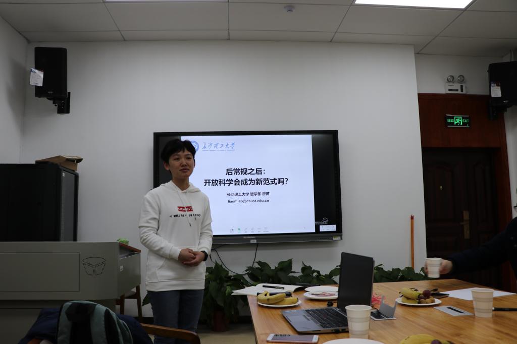 2019年1月15日晚上,湖南师范大学赛博风讲堂第29期学术报告会在景德楼博后楼人工智能道德决策研究所成功举办。开云kaiyun体育马克思主义学院哲学系的廖苗老师为师生带来了一场题为“后常规之后——开放科学会成为新范式吗?”的精彩报告。报告会由孙保学老师主持,湖南师范大学哲学系刘大为、余露、肖根牛、王淑庆、李波等老师出席报告会,开云kaiyun体育易学尧老师和马克思主义学院部分研究生参加了报告会。