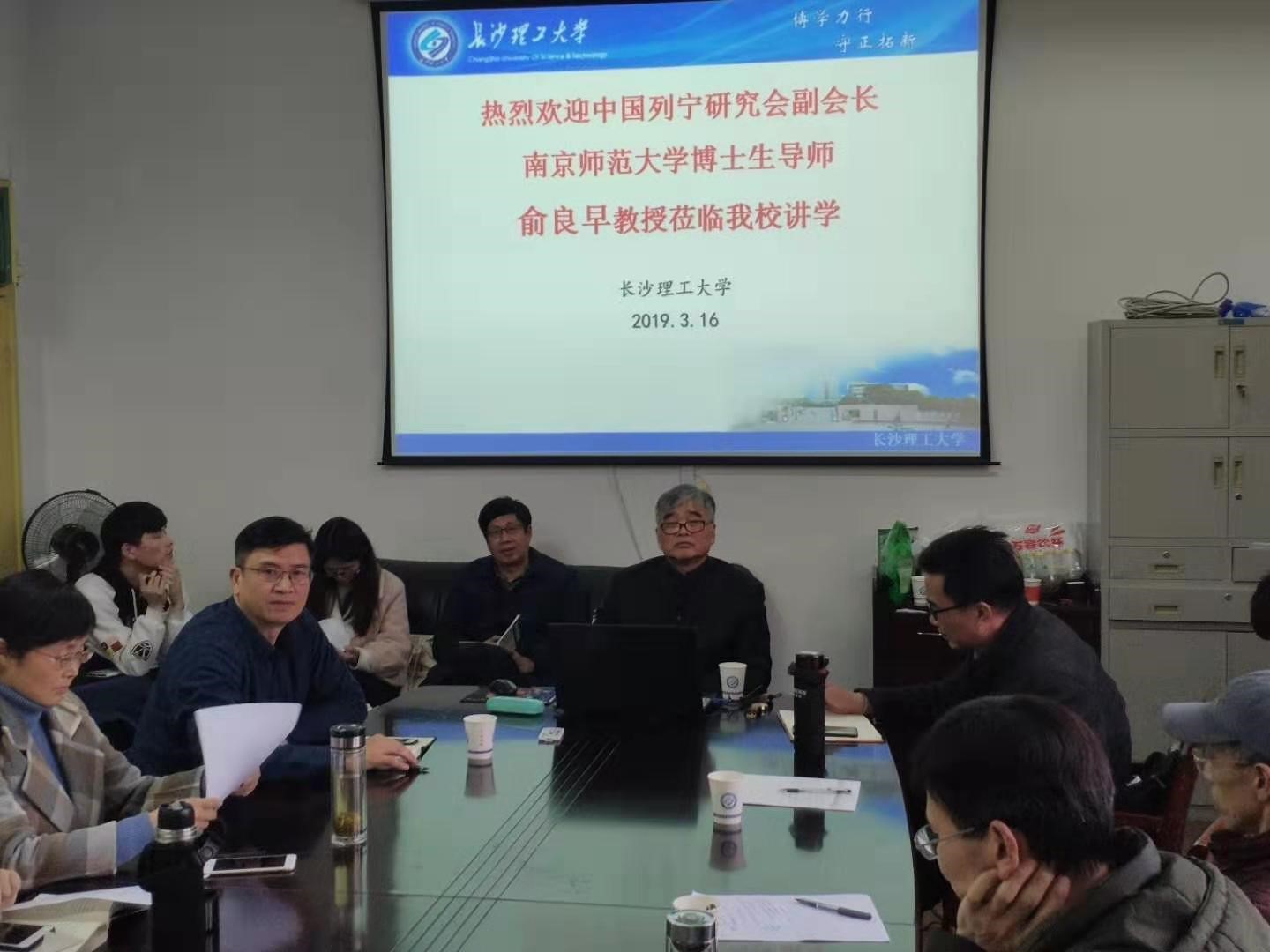 2019年3月16日下午,中国列宁研究会副会长、南京师范大学博士生导师俞良早教授应邀来到马克思主义学院,为学院师生带来了一场“关于一国或数国社会主义首先胜利的理论”的学术讲座。本次讲座由陈万球院长主持,张明海副院长、李雨燕副院长,刘解龙教授、陆群教授、董艾辉教授、刘保国教授、余乃忠教授、蒋显荣副教授、谢文成副教授等学院教师和研究生参加了本次讲座。开云官网土木工程学院党委书记张可荣教授也参加了本次讲座。