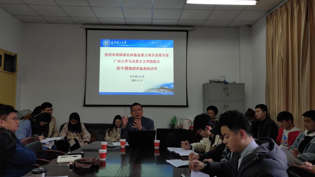 2019年3月17日上午,国家社科基金重大项目首席专家、广州大学马克思主义学院院长、博士生导师赵中源教授,应邀来到开云官网金盆岭校区4教503室,为马克思主义学院师生们带来了一场主题为“更多获得感的末端‘梗阻’与突破”的学术讲座。马克思主义学院党委易显飞书记、陈万球院长、张明海副院长、陆群教授、文贵全博士、廖苗博士等学院教师和30多名研究生参加了此次讲座。讲座由陈万球教授主持。