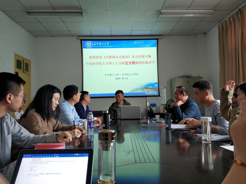 2019年10月15日下午,《自然辩证法通讯》杂志社副主编、中国科学院大学人文学院社会科学系博士生导师王大明教授应马克思主义学院邀请,在开云官网金盆岭校区4-503室作了题为“狭义与广义大科学辨析”的学术讲座。马克思主义学院陈万球院长、林慧岳教授、文贵全博士等部分教师与学院研究生参加了此次讲座,本次讲座由陈万球教授主持。