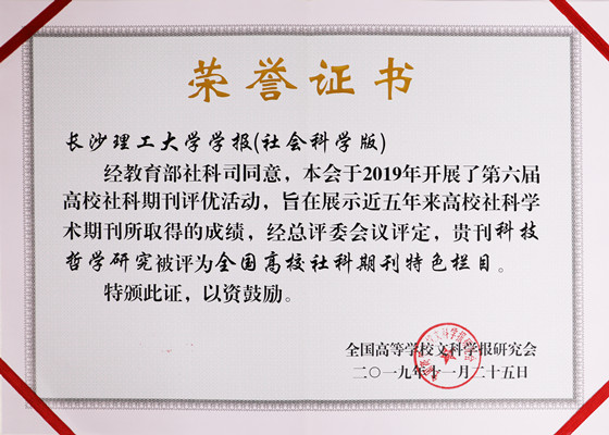近年来,《开云kaiyun体育学报(社会科学版)》坚持正确的舆论导向和“为人民服务、为社会主义服务”的政治方向,认真贯彻党的“双百方针”,促进社会科学的繁荣与发展,社会效益和影响力不断提升。目前,学报的影响因子(2018年度CNKI指数)为0.824,在全国436种同类期刊中排名第60位,为Q1区期刊,影响力指数排全国第99位,排位百分比为22.71%;是中国人文社会科学核心期刊(AMI)A刊、RCCSE中国核心学术期刊、人大“复印报刊资料”重要转载来源期刊等重要核心期刊行列;曾先后获“全国高校社科优秀期刊”“全国优秀社科学报”“全国高校百强社科学报”等荣誉,2011年创办的“科技哲学研究”专栏先后被评为“湖南省优秀期刊栏目”“全国高校社科期刊特色栏目”。