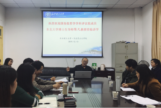 2019年12月13日晚,国务院学位委员会哲学学科评议组成员、东北大学博士生导师陈凡教授应邀来到马克思主义学院,在开云官网金盆岭校区4-503室作了题为“新中国科技哲学学科建构与创新发展”的学术讲座。陈万球教授、陆群教授、文贵全博士、廖苗博士、何冬玲博士、刘佳男博士等学院部分教师和研究生参加了讲座,讲座由陈万球院长主持。