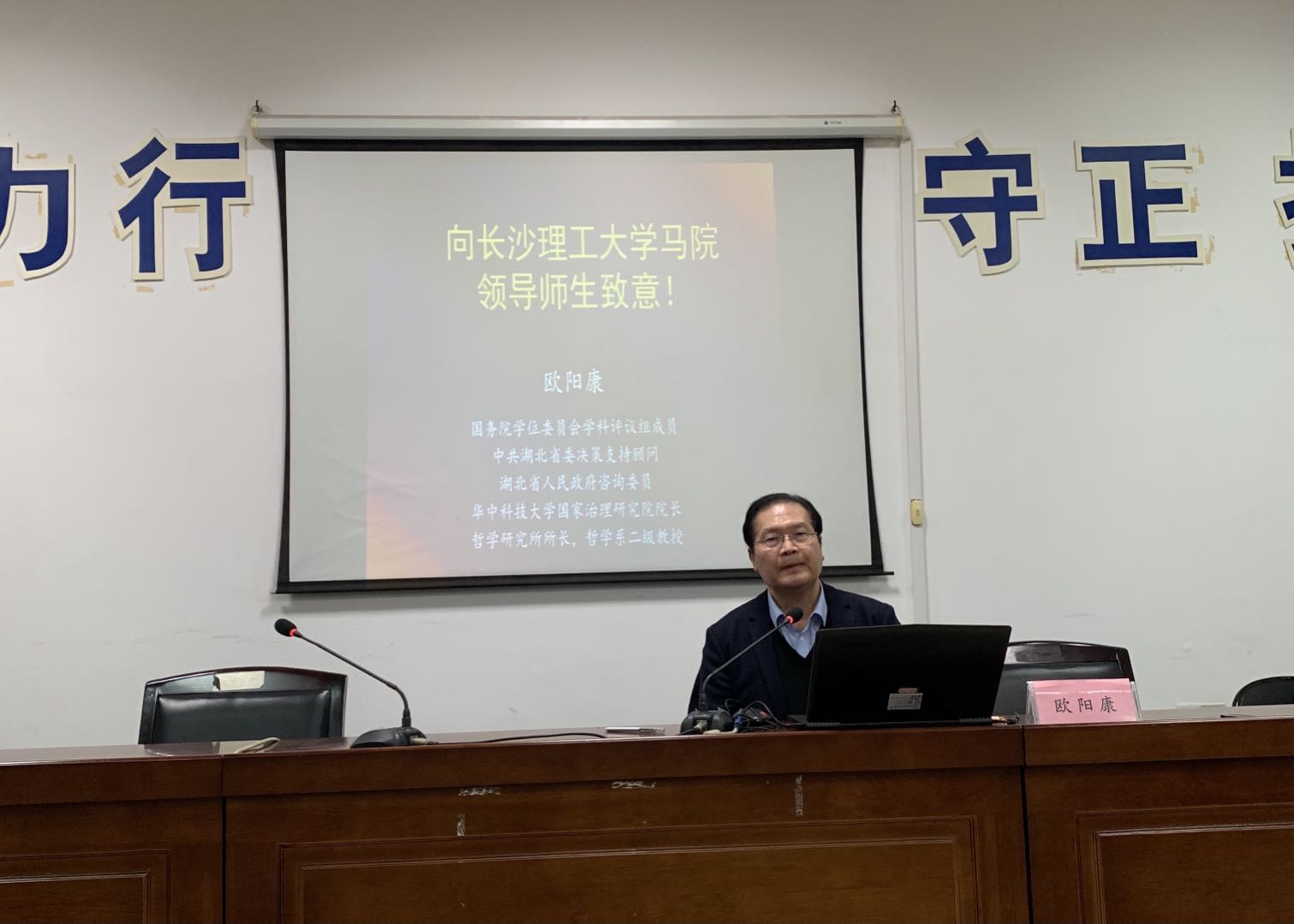 欧阳教授主讲完后,陈万球院长给大家分享了自己的心得感悟。陈院长认为,欧阳教授的讲座视野开阔,理论功底很深,又善于融会贯通,从世界、社会现象入手分析问题,展现了学术大家风范和深厚的爱国情怀,是大家学习的典范。