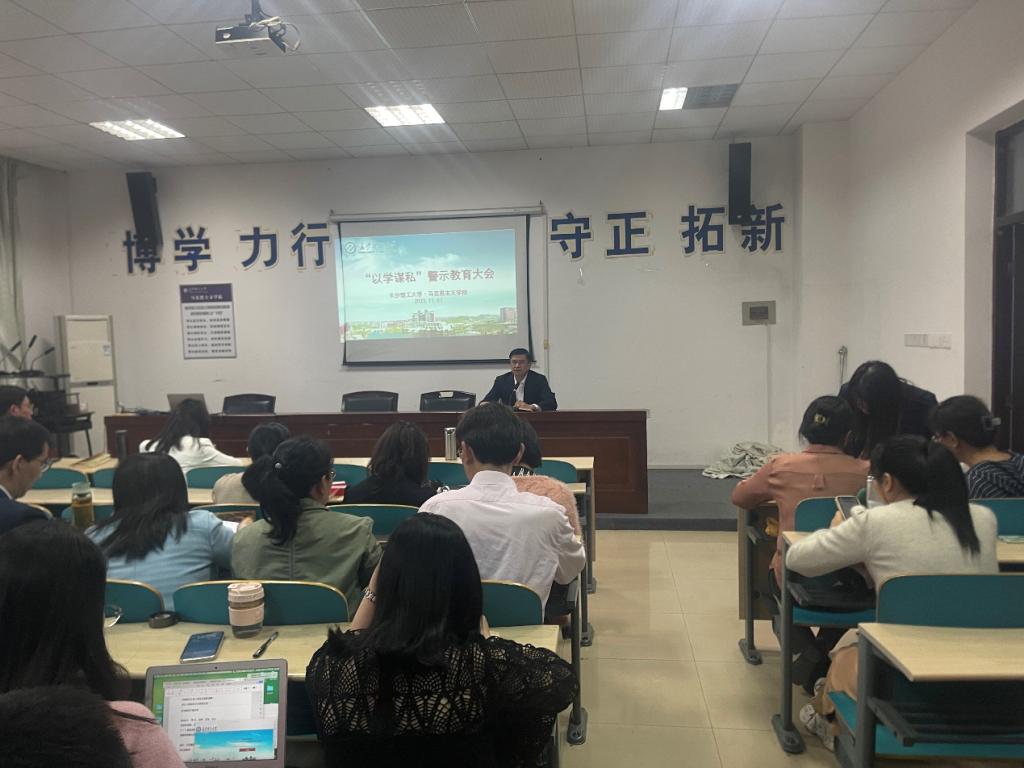 为切实增强全体教职工清廉意识,营造风清气正的从教环境,强化教师的责任担当,开云kaiyun体育马克思主义学院于2023年11月7日下午2点,在云塘校区文科C202室召开“以学谋私”警示教育大会。会议由学院党委书记陈万球教授主持,学院全体教职工参加。