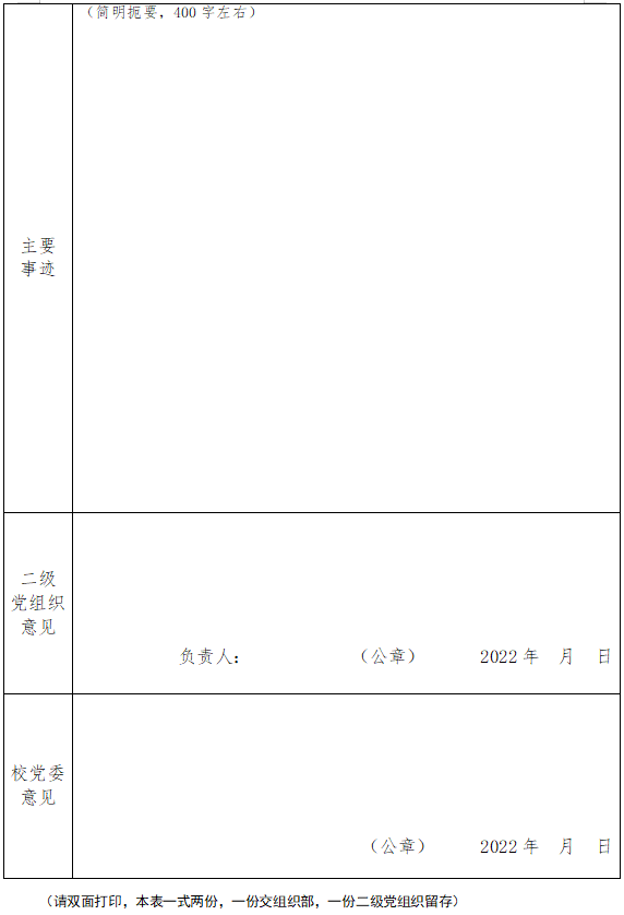 开云kaiyun体育优秀共产党员、优秀共产党员标兵、 优秀党务工作者、优秀党支部书记推荐审批表