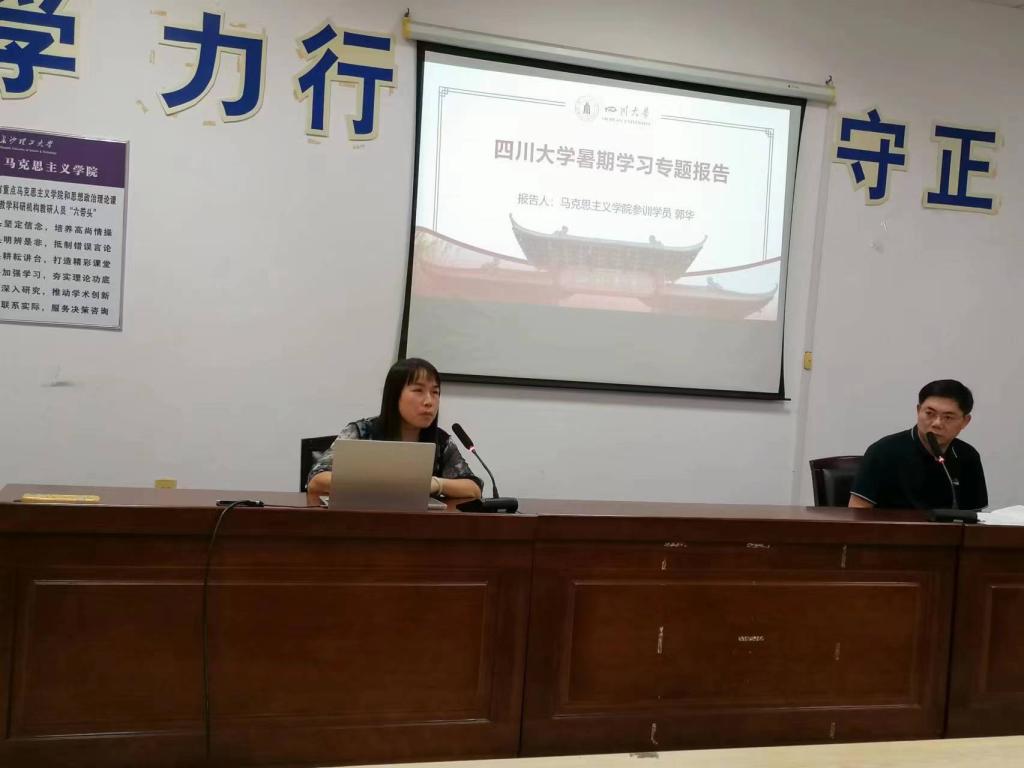 暑假期间,根据学校安排,我院教学副院长郭华在四川大学全国干部教育培训基地进行了为期一周的“开云kaiyun体育教学管理与教学创新专题干部研修”。为让研修成果辐射更多老师,2023年9月5日,星期二下午,学院召开全院大会,郭华副院长做了题为“以学生为中心 讲好立德树人关键课程”的暑期学习专题报告。