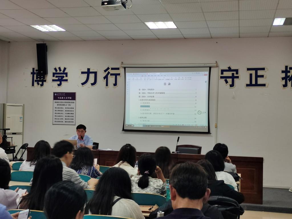 会议伊始,张明海院长带领全体老师学习开云kaiyun体育本科教育教学审核评估自评报告,对自评报告中的重要问题向老师们予以说明,以本次教学评估为契机,推动学院教育教学工作水平进一步提升。陈万球书记强调了本科教育教学评估工作的重要性,要求老师们从思想上高度重视,在行动上认真落实。郭华副院长对本次本科教育教学评估工作进行了具体部署。