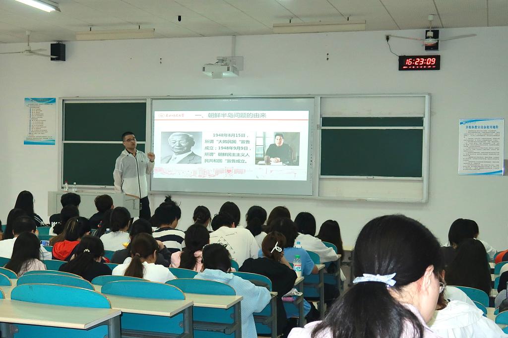 2024年11月15日16:00,马克思主义学院邀请东北师范大学马克思主义学院罗湘衡副教授走进《中国近现代史纲要》课堂,于综合教学楼B104教室主讲了题为《新中国的立国之战—抗美援朝战争》的通识教育讲座。罗湘衡副教授主要从事思想政治教育、政治学理论研究,是全国思政课展示竞赛一等奖获得者。