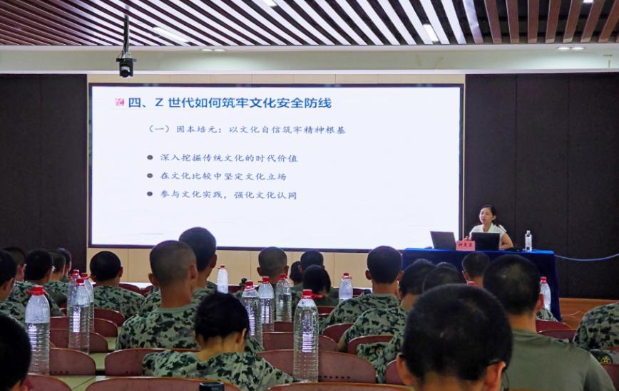 2025年6月27日下午2:00,在云塘校区工三A201教室,我院钟芙蓉副教授开展了题为“Z世代如何筑牢文化安全防线”的通识教育讲座。来自学校民兵连的同学70人参加了本次讲座。
