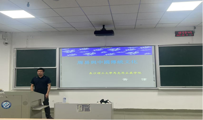 2025年6月19日晚上7:00,在金盆岭校区6教210教室,马克思主义学院黄伟老师开展了题为“《周易》与中国传统文化”的通识教育讲座。来自于金盆岭、云塘两校区的硕士研究生和本科生参加了本次讲座。