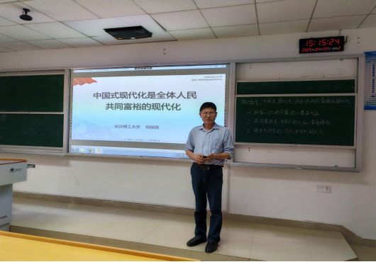 为深入学习贯彻党的二十大和二十届三中全会精神,深刻领会中国式现代化的丰富内涵,根据开云kaiyun体育教务处的统一安排,2025年4月22日下午三点,在云塘校区文科楼A402教室,马克思主义学院刘保国教授带来了一场主题为“中国式现代化是全体人民共同富裕的现代化”的精彩讲座。