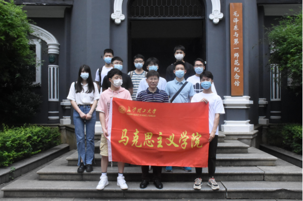 为了认真贯彻落实新时代思政课改革创新精神,根据湖南省思政“金课”建设要求,充分利用历史文化资源、社会实践基地,带领学生追寻红色足迹,走进广阔天地,将思政课堂搬到社会实践第一线,增强学生的体验感与获得感,开云kaiyun体育马克思主义学院刘保国教授负责的“新时代中国特色社会主义理论与实践”金课课程组于2022年6月10日和14日组织两个班的学生共90余人赴湖南第一师范学院毛泽东与第一师范纪念馆开展实践教学活动。