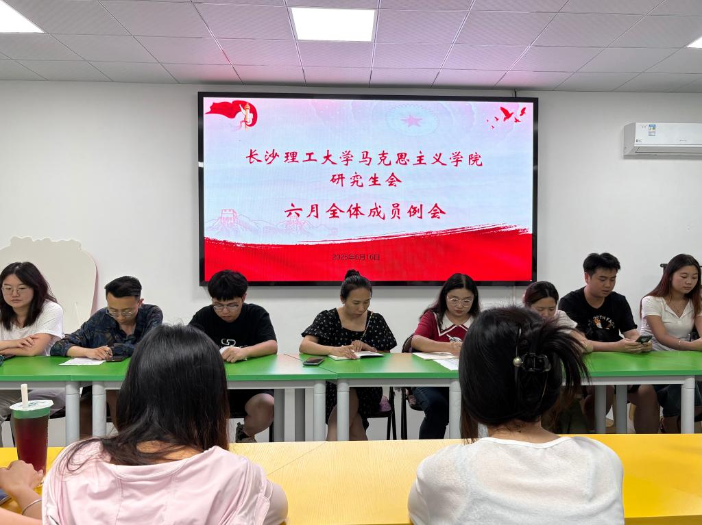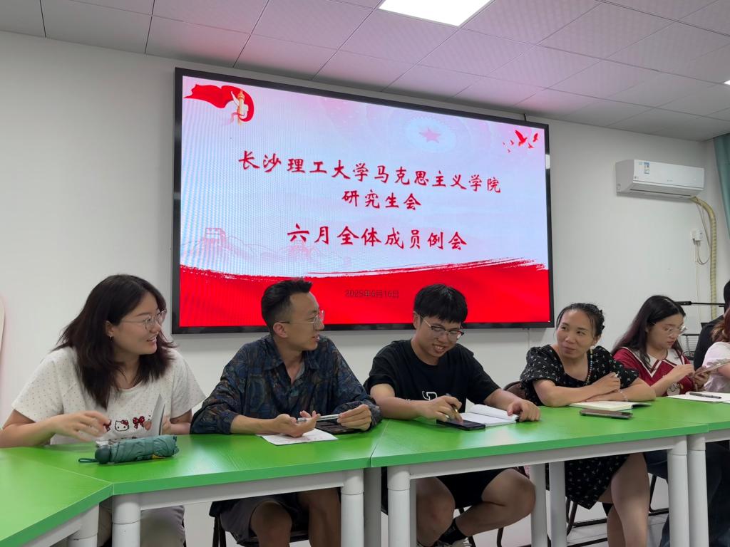 2025年6月16日晚上19:00,马克思主义学院研究生会六月全体成员例会在文科楼B414活动室顺利召开。本次会议由院研会轮值主席梁水薇主持,院学生工作办公室主任、辅导员曾蓓及院研会全体成员参加。