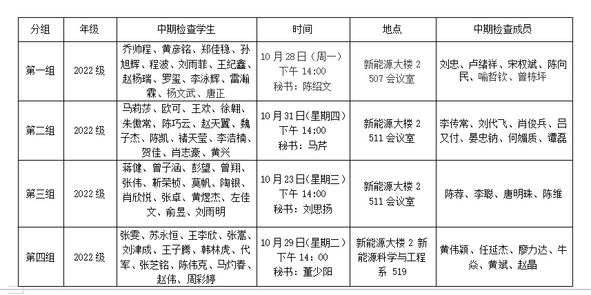 能动学院2022级硕士研究生中期筛选及中期检查考核安排表1-4