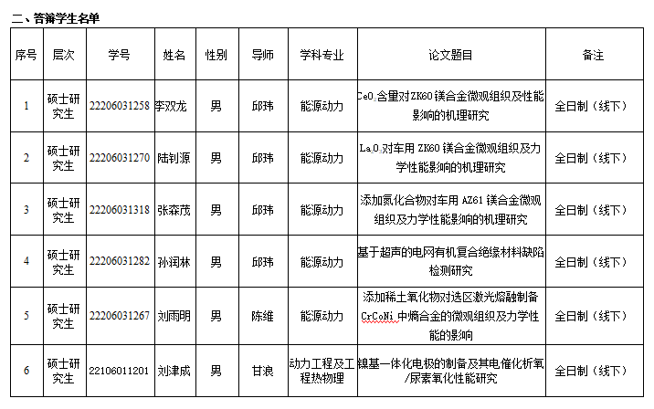 2025年能源与动力工程学院研究生学位论文答辩安排(第六组)