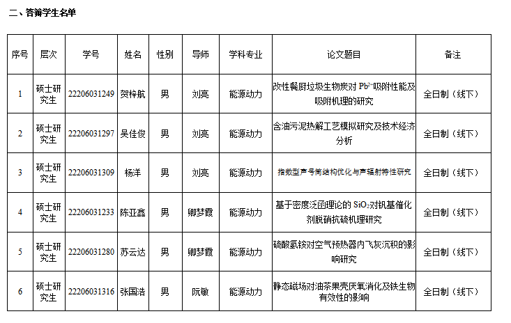 2025年能源与动力工程学院研究生学位论文答辩安排(第十二组)
