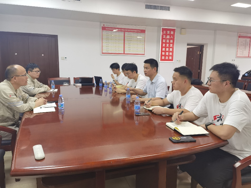 金竹山电厂相关负责人对实践团表示热烈欢迎,并介绍了电厂总体情况以及在安全生产标准化建设方面取得的成就。厂方对实践团成员进行了严格的入厂安全技术交底。实践团郑重承诺将严格遵守安全规范,服从电厂调度安排,深入一线调研分析,全力为电厂低碳升级贡献专业方案。
