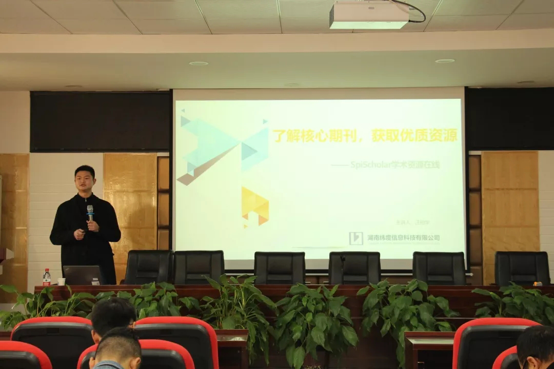 “工业物联网与智慧能源”学术讲座后,湖南纬度信息科技有限公司产品经理汪柏宇为我院17、18级研究生分享“SpiScholar学术资源在线数据库”的运用,并从评价期刊学术影响力、高效选择投稿期刊、搜索课题研究前沿、发现研究创新点、快速获取文献全文、追踪期刊发文研究方向、全天候文献传递服务七个方面详细介绍了SpiScholar学术资源在线数据库的优点及应用方法。(图/于淼 文/彭腾 审/何建军)