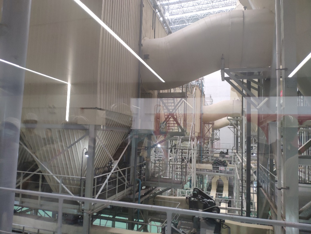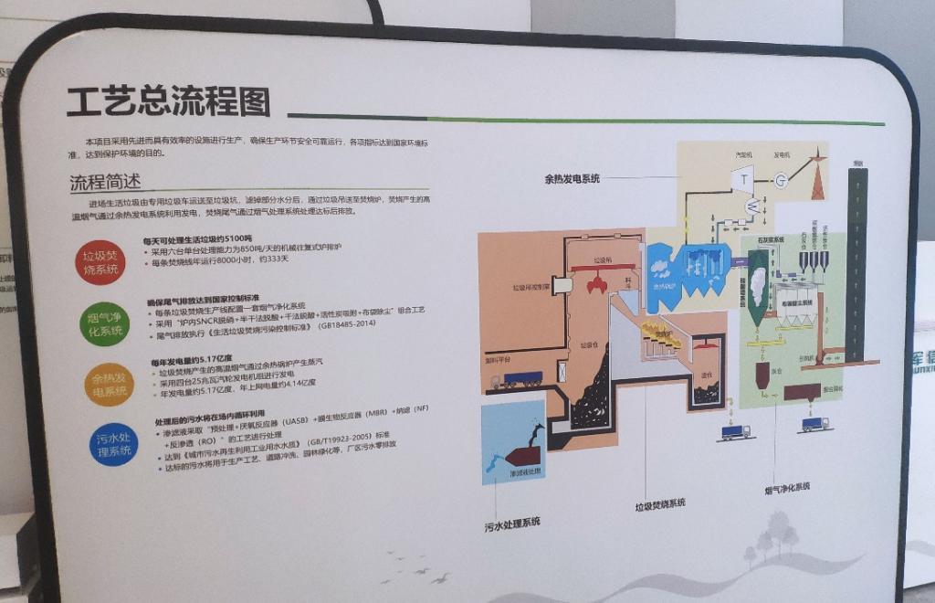 下午2点左右,浦湘生物能源有限公司的人资处李佳星首先在参观通道内向同学们介绍了生物质发电的总工艺流程图和各子系统的具体功能与应用,主要包括垃圾焚烧系统、烟气净化系统、余热发电系统以及污水处理系统等,同学们在通道内参观学习了生物质发电的流程、设备型式、整厂生产运行状态等内容。