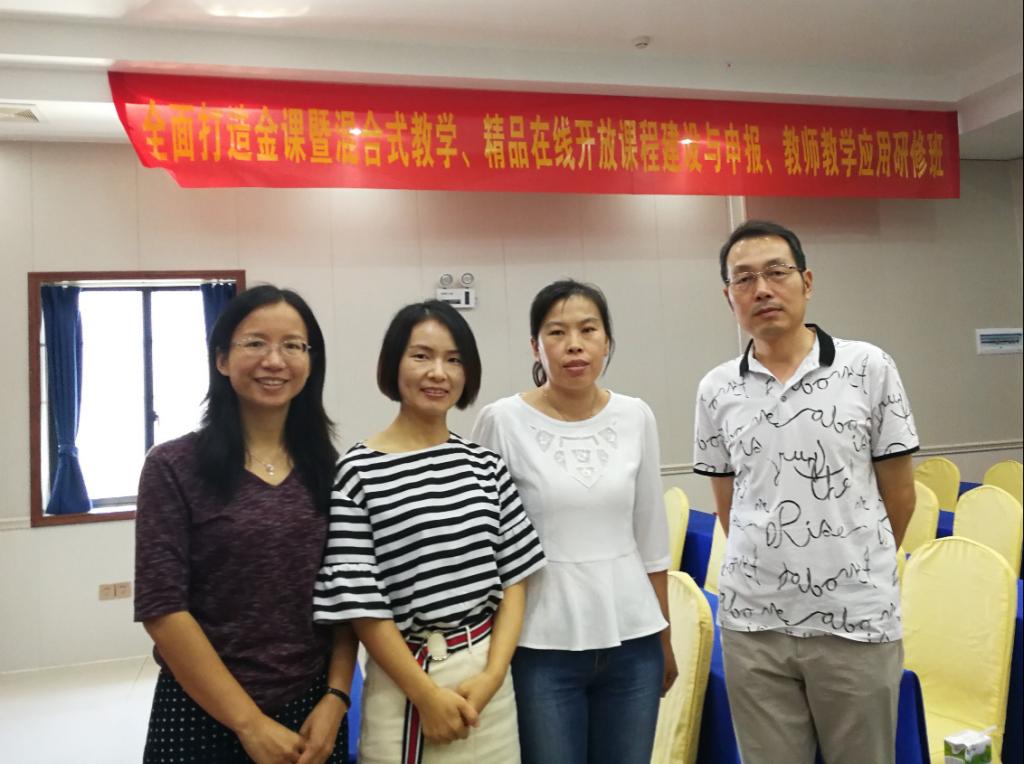 9月21日-22日,由中国智慧工程研究会举办的 “全面打造金课暨混合式教学、精品在线开放课程建设与申报、教师教学应用与现场开发演练研修班会议在星城长沙嘉玺国际大酒店顺利举行。本次讲座授课专家为浙江师范大学网络继续教育学院院长助理、“网易云课堂签约讲师”阮高峰教授。我院冯磊华、徐慧芳、汪淑奇、石尔等四位老师参加了培训学习。