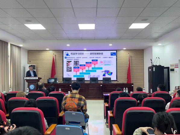 朱顺鹏教授发表了题为“机器学习与结构疲劳可靠性研究”的报告。他首先指出不确定性在工程领域中的普遍性,并提出了求解复杂工程问题的挑战。朱教授从疲劳的发展历史、基本概念、物理一致性建模等方面深入介绍了机器学习的应用,并分享了其团队在增材制造疲劳分析、数据驱动与不确定性处理以及可靠性优化设计等方面的研究成果。这些内容为在场的师生提供了宝贵的学术经验和启示。报告结束后,我院师生积极与朱教授进行了深入的交流和讨论,现场气氛热烈,学术氛围浓厚。