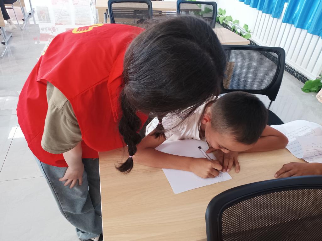 团队成员森巴特·阿依木拉提从理论和实践两部分进行了普通话推广授课。在理论授课中,团队成员向同学们讲解了学好普通话发音的技巧及学习普通话的重要性,并且让大家感受到了传统文化的魅力。实践环节中,志愿者带领学生学习了常见易错字,并引导学生朗读了《蜀道难》等经典古诗词,不仅锻炼了普通话发音,还让大家感受到了古诗中祖国山河的雄伟壮丽。在教学任务结束后,团队成员给同学们讲解前不久在本地举办的中国天马文化节的来历,并鼓励他们努力突破语言的壁垒,学习好汉语这门语言,亲身体验少年的扬鞭策马、举步生风,亲眼目睹万马奔腾、风驰电掣的震撼场景,亲自领略古诗词中描绘的祖国的壮丽河山。