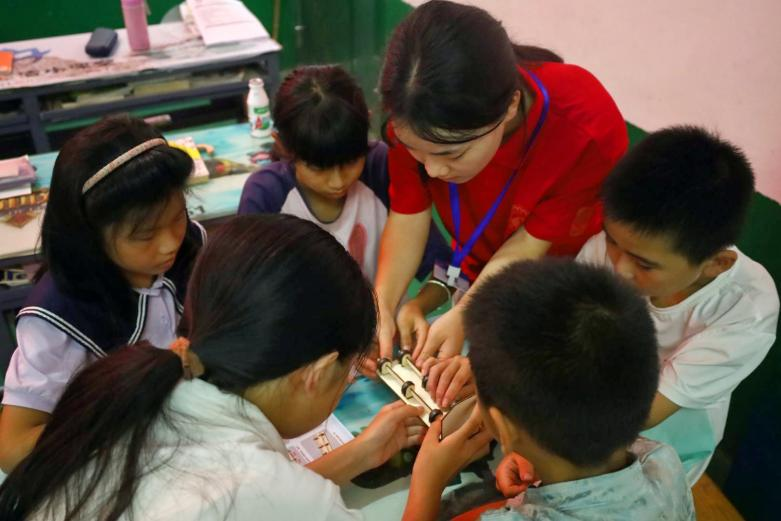 同学们了解磁悬浮列车后,在志愿者们的带领和指导下,孩子们以小组为单位,小心翼翼地拼接轨道、安装磁铁、固定车身。当亲手组装地小模型成功悬浮在轨道上时,他们爆发出热烈地欢呼声。孩子们激动地举着自己的作品,向志愿者展示自己的作品,眼中闪烁着收获的喜悦。