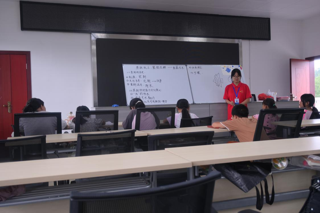 “古代没有相机,渔民伯伯就想出了好办法!”何倩指着图片上的鱼影说,“他们把鱼身上涂墨,铺上纸轻轻一按,鱼的样子就留下来啦,这就是最早的鱼拓。”从渔民记录渔获的实用技能,到如今能画出水草、题上诗句的艺术品,孩子们瞪大眼睛,听着这项古老技艺如何“变身”。