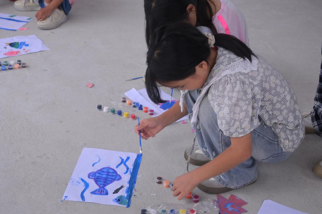 最激动的时刻来了!孩子们戴上手套,在队员们的指导下给模型鱼“穿”上彩色“外衣”。澎湖村的田雯汐屏住呼吸,把自己画的模型鱼轻轻盖在白纸上,掌心慢慢按压,当纸张掀开的瞬间,一条带着清晰纹路的“鱼”跃然纸上。