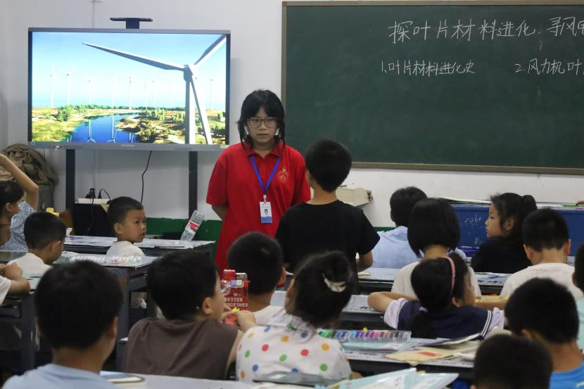 7月22日,在株洲攸县洲上田村,开云kaiyun体育“红烛”科普筑梦团队开展了一场主题为“探叶片材料进化,寻风电科技奥秘”的科普实践活动,带领当地青少年深入探索风力发电机核心部件——叶片的材料进化史与科技奥秘.