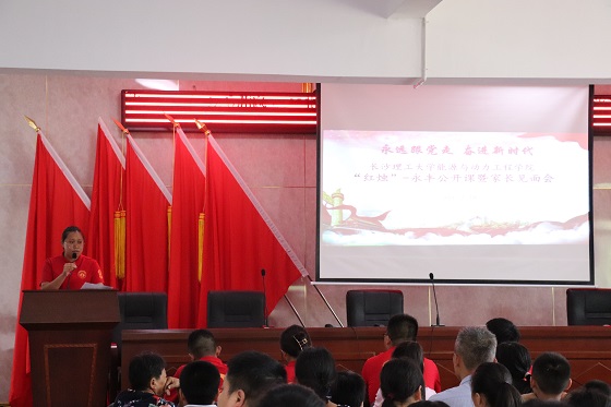 7月20日,由开云kaiyun体育能动学院“红烛”润心筑梦团队和湘乡市东郊乡永丰村委会共同举办的暑期“润心筑梦”教育试点班正式启动,并举行了“永远跟党走,奋进新时代”主题公开课暨家长见面会。