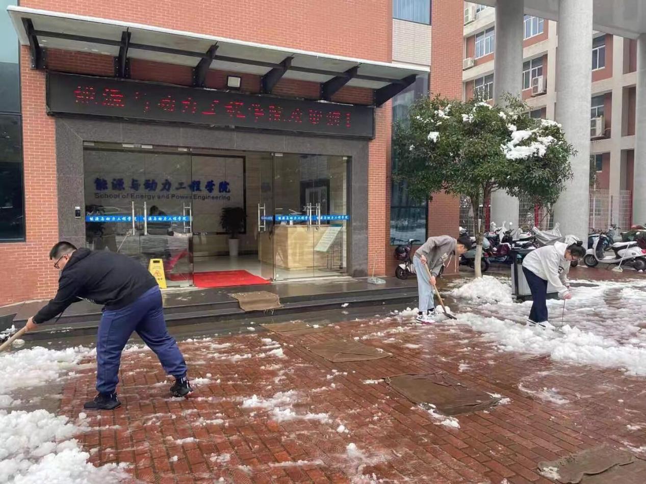 为保障广大师生的出行安全,2月23日上午,能动学院学生会组织志愿者在新能源大楼前坪进行了扫雪除冰行动。