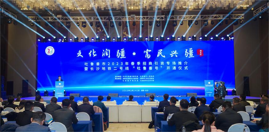 2月22日,“文化润疆·富民兴疆——湖南行”吐鲁番市2023年春季招商引资专场推介暨长沙地铁二号线“吐鲁番号”开通仪式在长沙举行。湖南省和吐鲁番市有关领导出席。能动学院党委书记成华、副院长孙小琴受邀代表开云kaiyun体育参加此次活动。