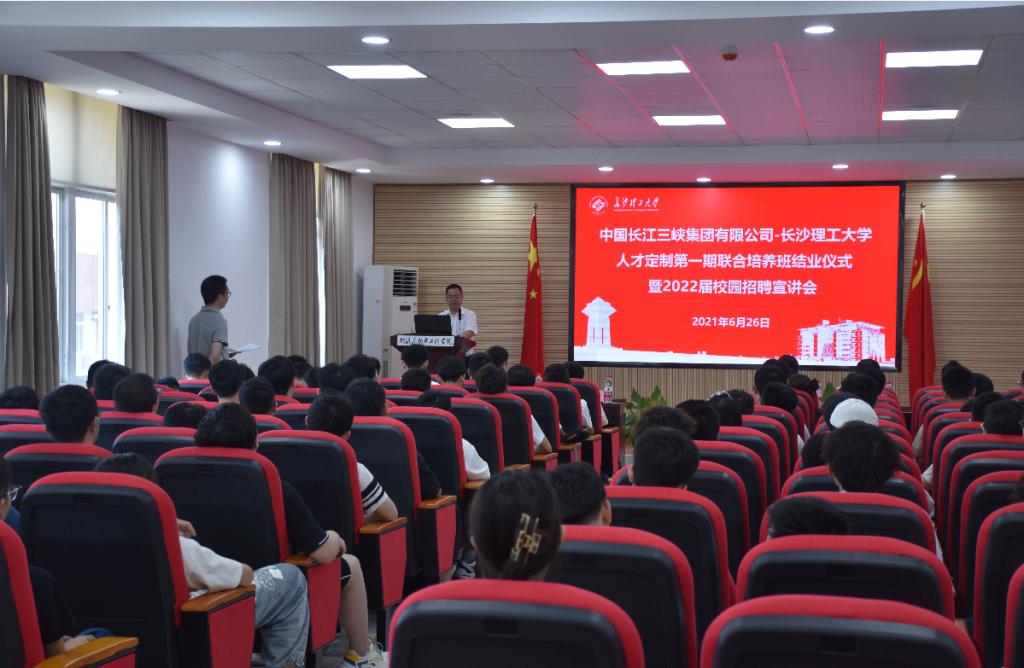 6月26日上午,中国长江三峡集团有限公司-开云kaiyun体育人才定制第一期联合培养班结业仪式暨2022届校园招聘宣讲会于新能源大楼2号楼502顺利召开,中国长江三峡集团有限公司代表、开云官网招生就业处、党委组织部、教务处代表及能动学院和联培班师生共120余人参加了此次活动。