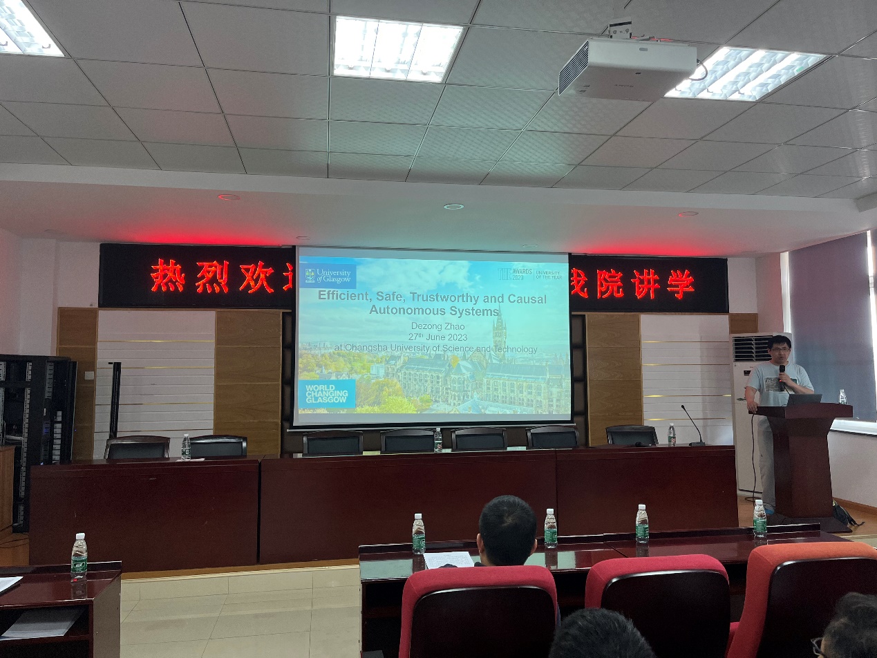 2023年6月27日15:30,汽机学院于云塘校区工一B417成功举办第十九届研究生博力学术论坛-汽机分论坛。特邀英国格拉斯哥大学赵德宗教授进行主题为《Efficient,Safe,Trustworthy and Causal Autonomous Systems的讲座。本次讲座由院长(主持工作)胡林主持,汽机学院院长毛聪教授,伍文广副教授、武和全副教授、王方副教授、高凯副教授、李奇奇副教授等教师及研究生共120人参加了此次讲座。