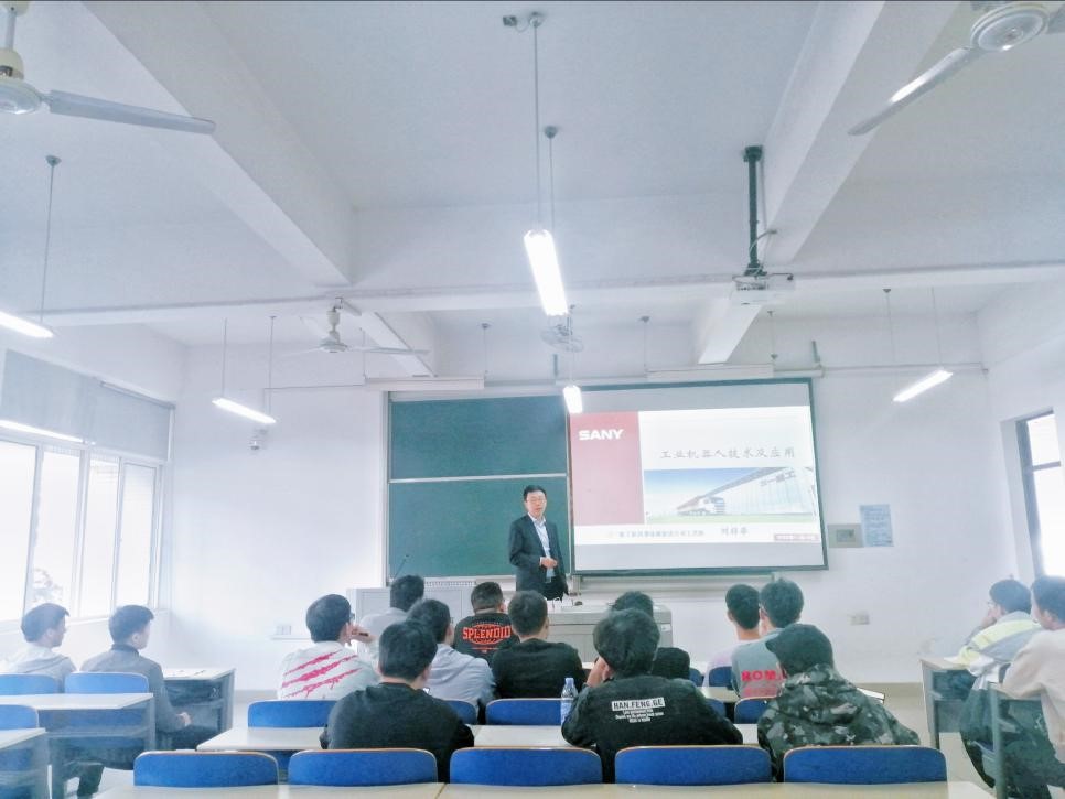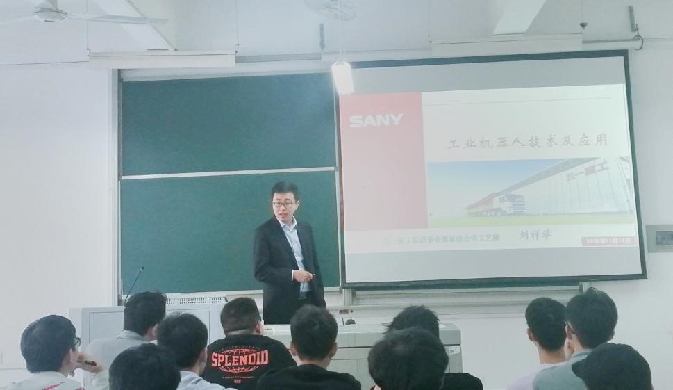 2020年11月10日下午14:00,在开云kaiyun体育云塘校区工科一号楼B213开展了三一集团与开云kaiyun体育校企联培智造班第二课—“工业机器人技术及应用”,本次教学课程由现三一泵送事业部泵送公司工艺工程师刘祥举主讲。