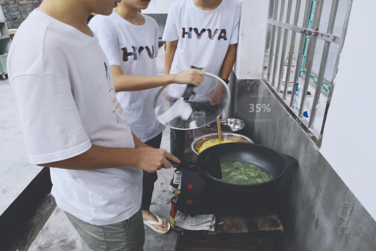 尽管途中弯弯绕绕,非常颠簸,但是我们都克服了,都很平安的到达了峒头寨。来到小学,我们受到了符老师和乡亲们热烈欢迎。我们把行李收拾好之后,就开始收拾我们的教室、办公室和厨房,打扫干净之后,我们就开始布置办公室和教室,把教室里的桌椅准备好并摆放好。接着,全员出动,煮饭,洗菜,切菜,掌勺,虽然食材简陋,但是我们辛苦做出来的菜色香味俱全,非常美味。