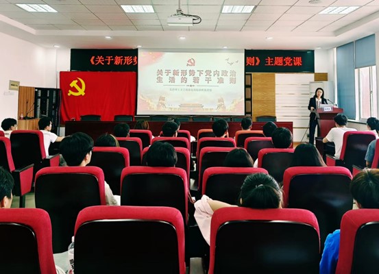 孔伟红指出,党内政治生活是党组织教育管理监督党员的重要形式,是党员进行党性锻炼的重要平台。她比较分析了《关于党内政治生活的若干准则》《关于新形势下党内政治生活的若干准则》的传承和区别,指出制定《关于新形势下党内政治生活的若干准则》是完善“四个全面”战略布局的需要、是深化全面从严治党的需要、是解决党内存在突出矛盾和问题的需要,概括出《关于新形势下党内政治生活的若干准则》的新特点,介绍了党内政治生活中的突出问题,指出新形势下加强和规范党内政治生活重点是各级领导机关和领导干部。她围绕十二条具体条例,结合党的历史和奋斗实践,逐条进行了深入浅出地解读。她表示,学生党员是学生中的先进分子,希望全体学员坚持党员标准,发扬党内民主,营造风清气正的政治生态,确保党始终成为中国特色社会主义事业的坚强领导核心。