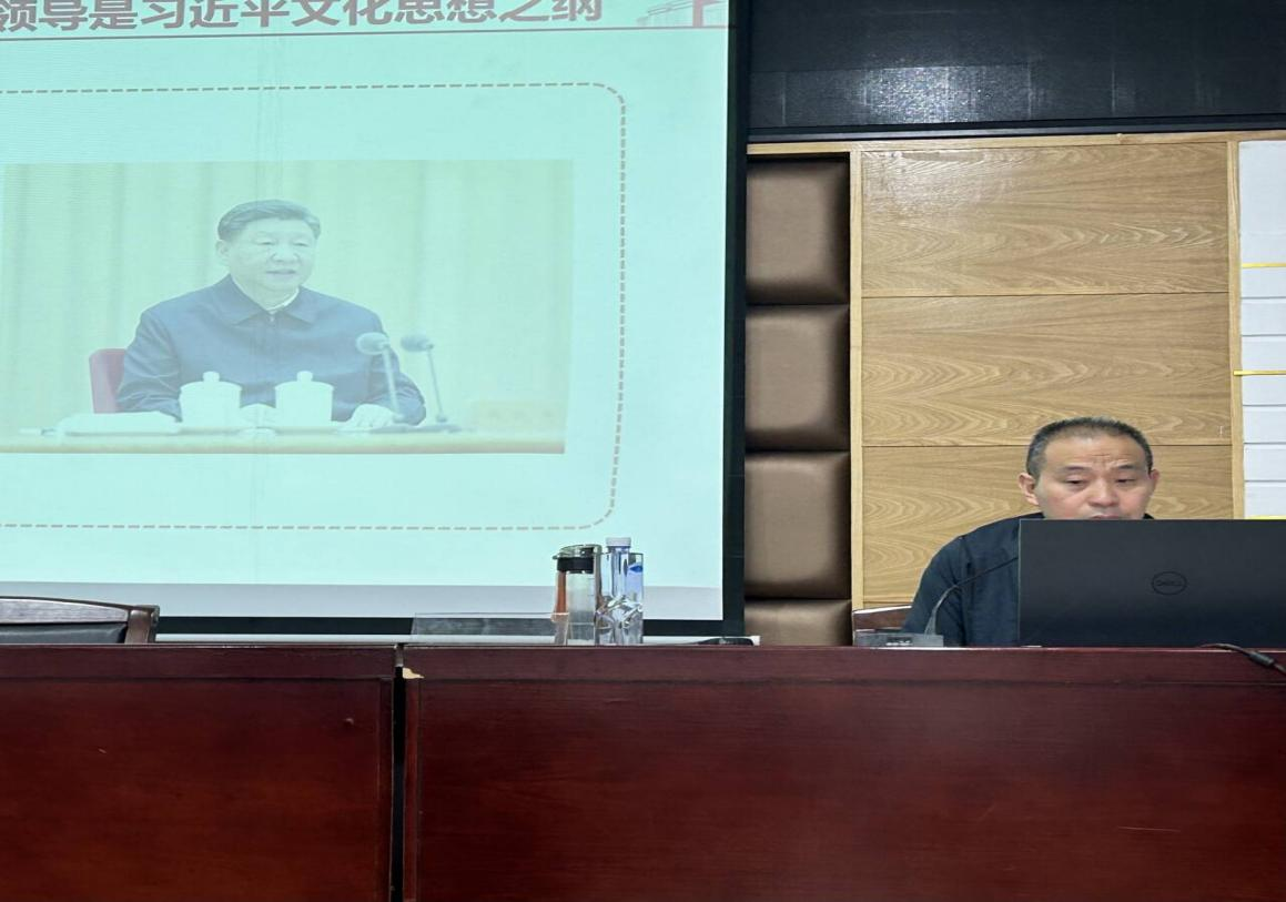 余乃忠从习近平文化思想的精髓要义、理论贡献、世界意义三个方面进行了分析,阐释了新时代我国文化建设举什么旗、走什么路、坚持什么原则、实现什么目标等根本问题。他从中国学术史出发,指出中国哲学要推动中华文明创造性转化、创新性发展,要求全体学员深入学习领会习近平文化思想,当好党的创新理论的积极宣讲者、马克思主义在意识形态领域指导地位的坚定维护者,坚定文化自信,争做新时代好青年。(图/文:戴昀/彭琼英、戴昀,一审:彭琼英、二审:周小杰、三审:孔伟红)