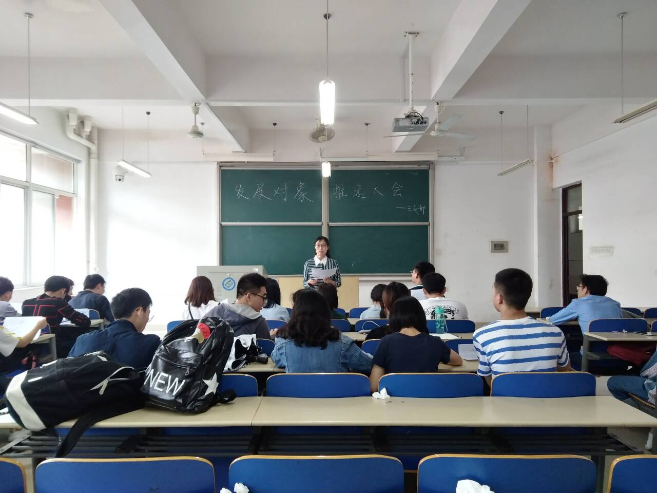 4月11日中午,汽机学院学生各党支部优秀团员推选大会在工一B区教室顺利召开。会议由各支部副书记主持,学院党委书记邱国良、副书记靳攀科、全体党员和各支部发展对象候选人参加了会议。