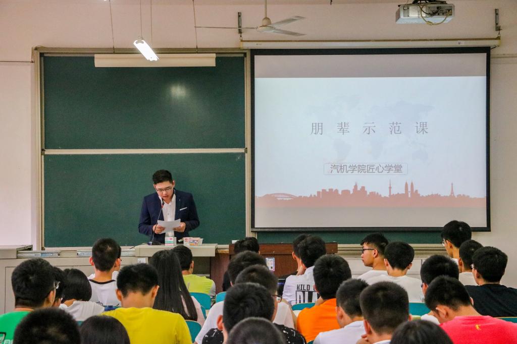 5月26日上午十点,汽车与机械工程学院于文科楼C区402举办了匠心学堂“朋辈课堂”示范课。本次示范课由二支部党员齐铁钧主持,汽机学院2016级测控2班郑汉主讲。汽机学院党建辅导员周路路老师,15、16级全体学生党员参与学习。